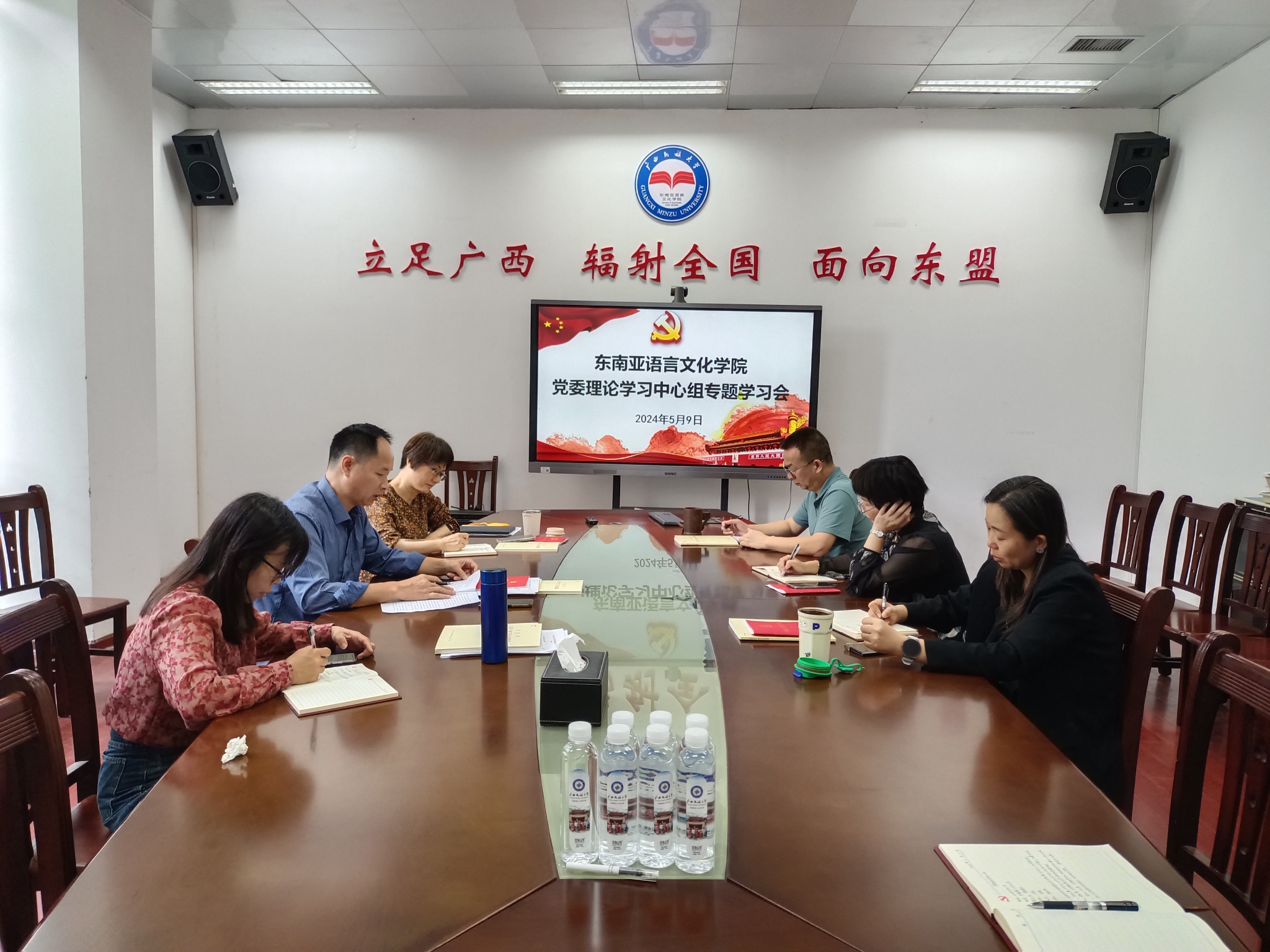5月9日下午,m88明昇党委在东盟主楼118会议室召开理论学习中心组第三次学习会议。会议由学院党委书记何波主持。