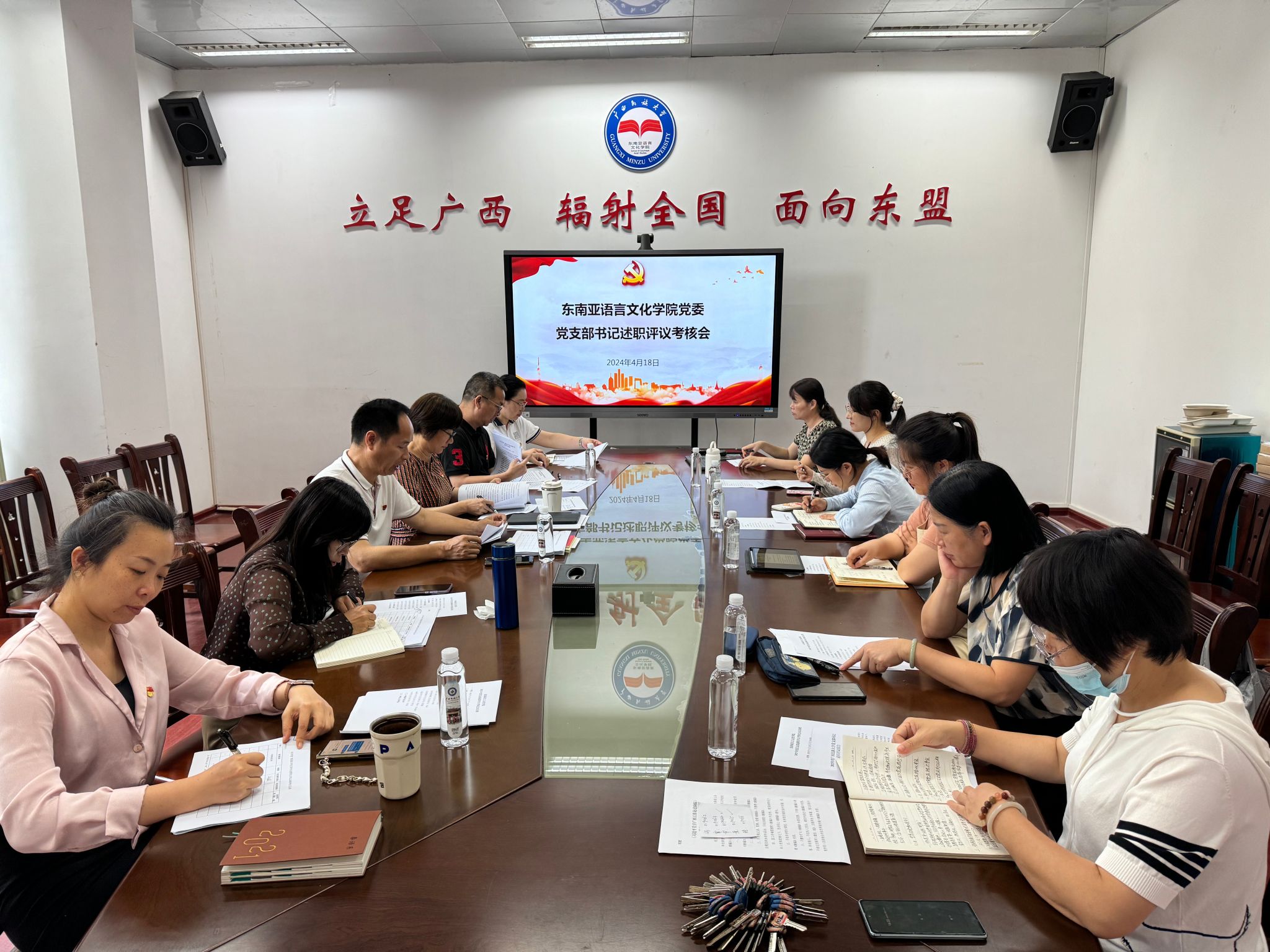 4月18日下午,m88明昇在东盟楼主楼118会议室召开2023年度党支部书记述职评议考核会议。学院党委委员、各党支部书记、学院纪委委员参加会议,由学院党委书记何波主持。