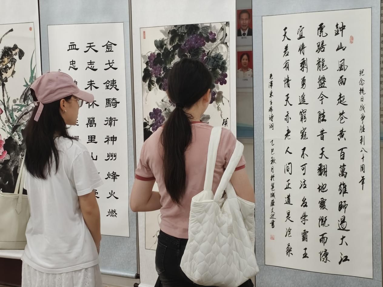 展览涵盖了书法、国画、工笔画等,生动再现了中国人民抗日战争从局部抗战到全面抗战,从战略防御到战略反攻的全过程,以及世界反法西斯战争中各国人民携手抗争的壮阔历程,让同学们对伟大革命精神有了更加深刻的感悟。