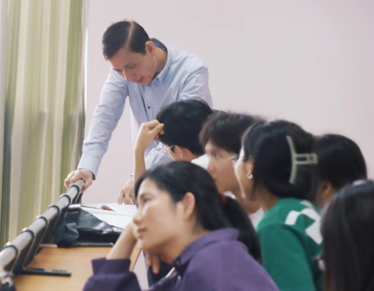 2024年4月15日,柬埔寨皇家科学院院士、现任副院长兼布格里僧王大学科学理事会主席占松诺博士(CHAN Somnoble)受邀莅临我校,在东盟楼主楼开展关于“柬埔寨语与泰语的关系”及“柬埔寨语言的印度化”主题讲座。