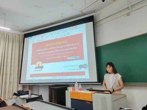 2024 年 5 月 29 日,泰国法政大学跨学科研究学院专家婉瓦娜·阿伦叻(WANWANAT AROONROEK)到m88明昇作题为“法律文本中的语言力量——以泰国刑事诉讼法与民事诉讼法为例”的学术讲座。