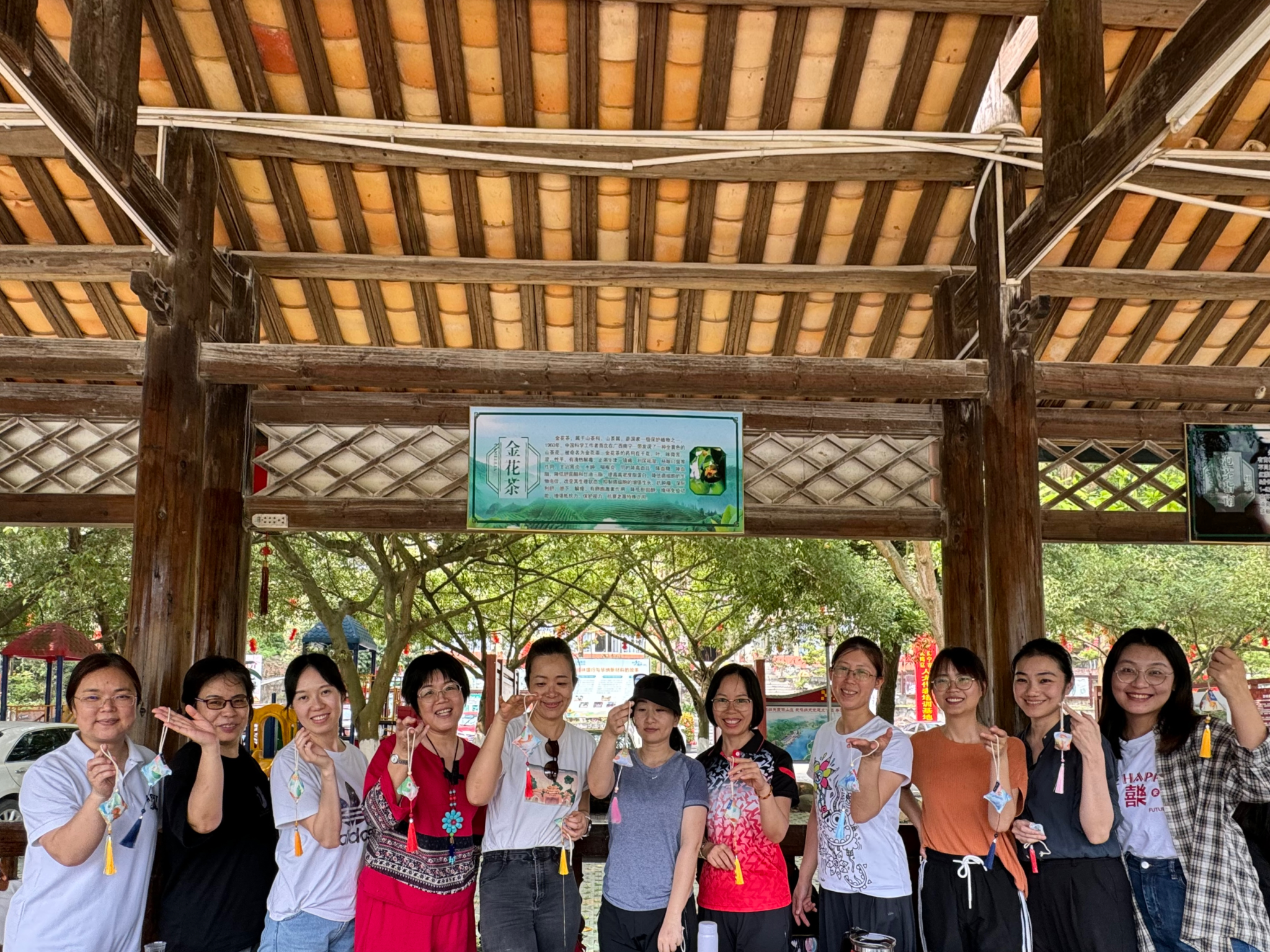 午餐过后是品茶和制作香囊活动。茶艺师介绍了纳天香茗的制作工艺并展示了泡茶的流程,让老师们学习了相关的茶文化并体验了茶艺的乐趣和意境。