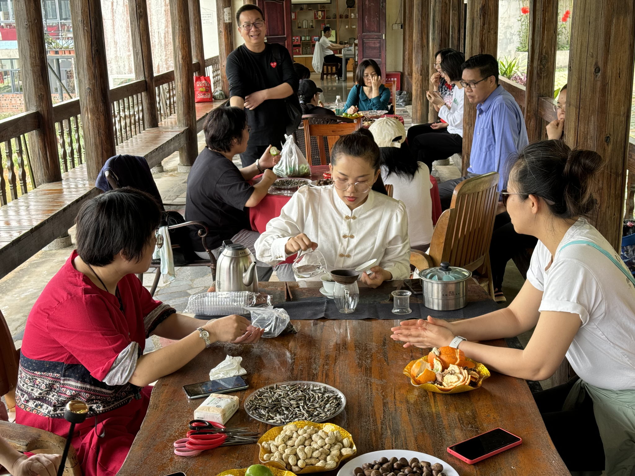 接着,老师们在茶山开展了山歌对唱和采茶体验环节。现场歌声嘹亮,气氛浓烈,山歌欢快的旋律与老师们的欢呼声荡漾在整个茶山上空,大家都沉浸在浓厚的壮乡风情之中。