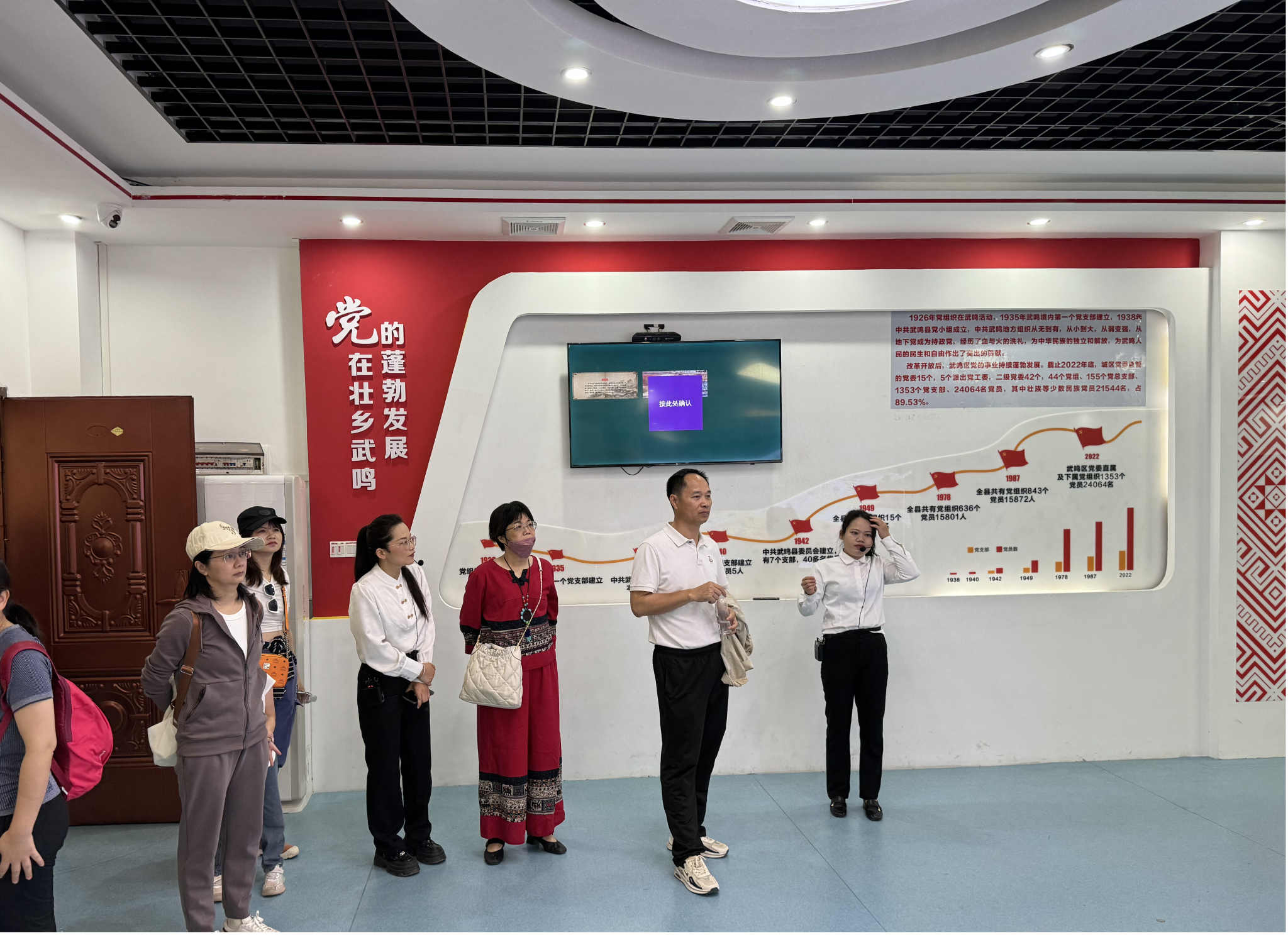 首先大家来到了纳天山庄党建园,参观了“红色记忆步道”长廊,重温了中国共产党一大到二十大的历史性重要时刻,接着参观了华纳先锋党建馆和华纳纳米钙数字展厅。了解了华纳投资集团的发展现状并在东南亚地区业务开展和学院小语种学生的就业情况进行了交流。