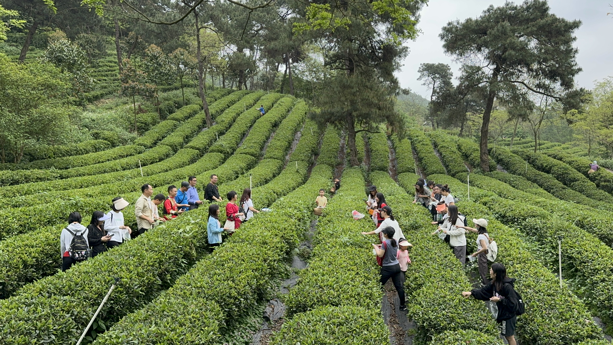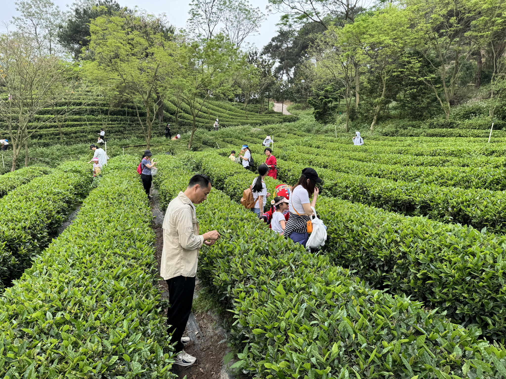 对唱山歌结束之后,老师们开始体验采茶之旅,在山野间体会大自然的疗愈力量,享受到了真正的娱乐放松,山歌文化的独特魅力与山间采茶的休憩放松组成了此次工会活动最美好的代名词。